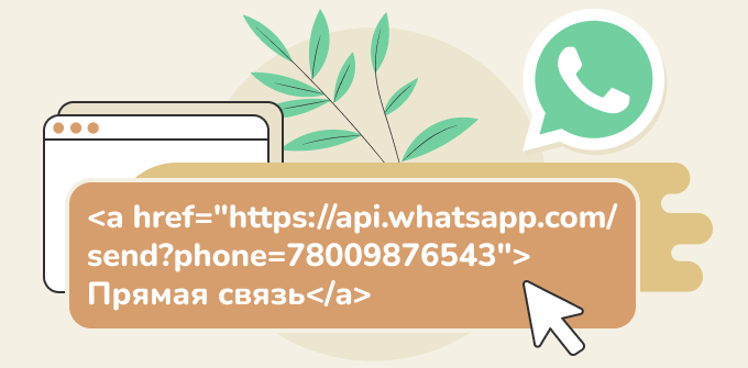 Функция «Прямая связь» позволяет запустить чат в WhatsApp с человеком, чей номер не добавлен в список контактов. Для этого достаточно создать ссылку на Ватсап по номеру телефона, которая откроет диалог сразу в приложении или веб-версии.
