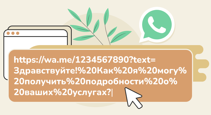 Чтобы создать ссылку, введите https://wa.me/<мобильный пользователя>.