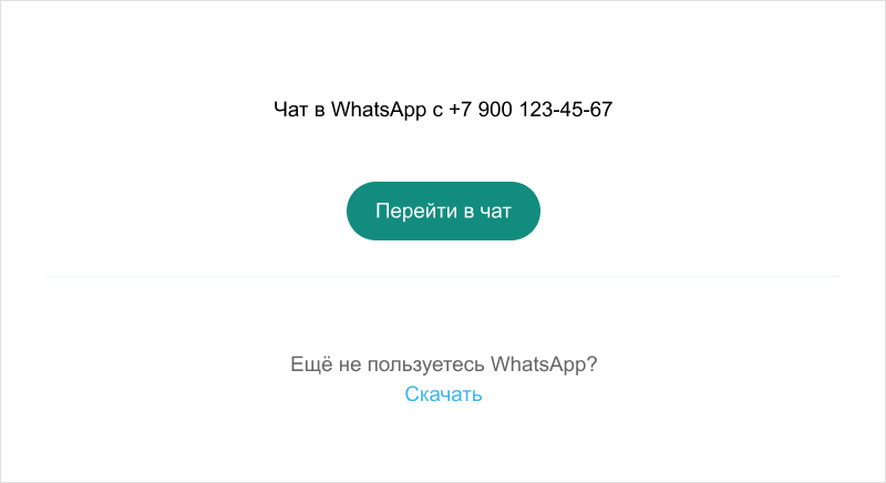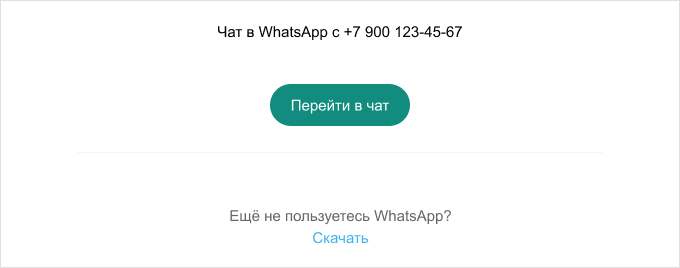 В первую очередь запомните несложный шаблон ссылки на WhatsApp: https://wa.me/ваш номер. Вместо «ваш номер» впишите номер телефона в международном формате — без пробелов, плюса и дефисов. Например, для номера +7 900 123-45-67 ссылка будет такая: https://wa.me/79001234567.