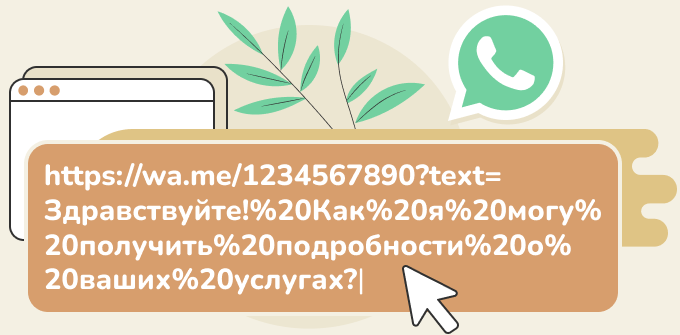 Ссылку можно размещать на сайте, добавлять в профиль соцсетей или отправлять клиенту по электронной почте — при клике по ней пользователь сразу перейдет в чат с вами и увидит подготовленный текст.