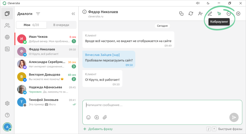 Завершая смену, закрывайте диалоги или передавайте открытые чаты коллегам, чтобы клиент не остался без ответа.
