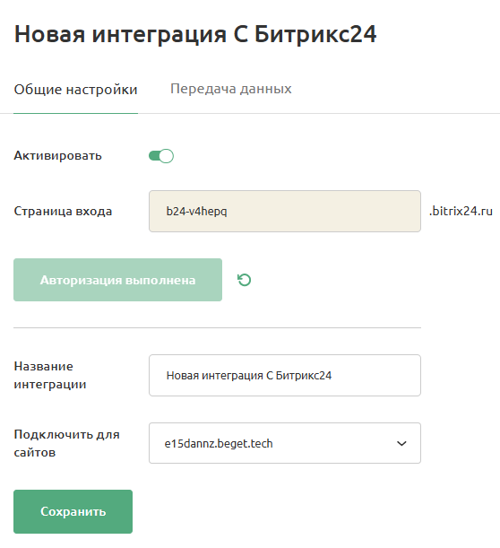 6В разделе Управление → Интеграция с CRM у Вашей интеграции появится статус «Активна», и данные будут отображаться в Битрикс24 в соответствии с Вашими установленными настройками.