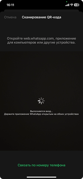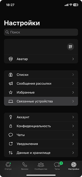 - Откройте WhatsApp на телефоне. В настройках выберите «Связанные устройства» → «Связать устройство» и отсканируйте QR.