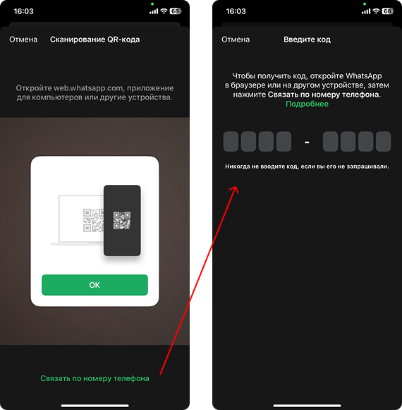 - Рекомендуем использовать номер телефона, который уже был подключен к WhatsApp и велась переписка.