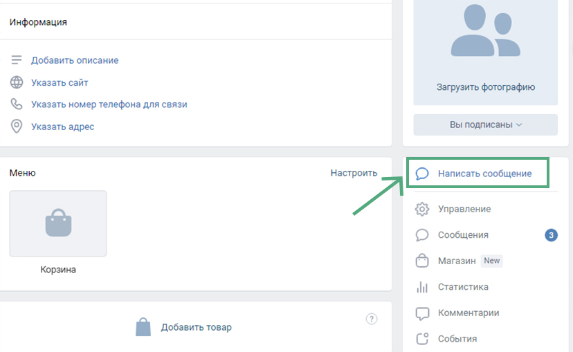 После этого на главной странице сообщества появится кнопка «Написать сообщение».