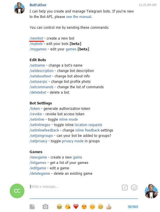 - 3Найдите в сообщении от бота слово "/newbot" и нажмите на него.