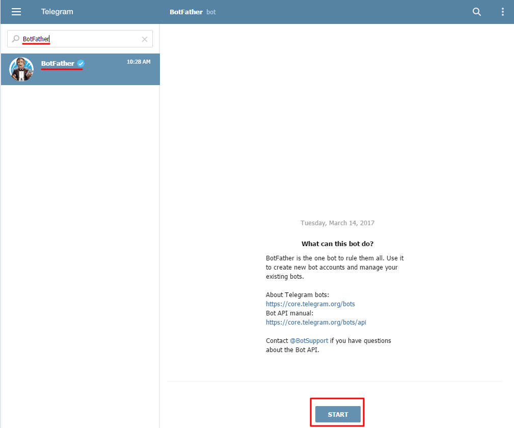- 2Наберите в поле "Search" имя бота - BotFather и начните с ним