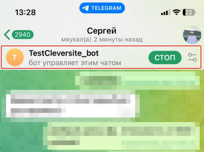 - 2В приложении Telegram в чатах, к которым у бота есть доступ вы увидите соответствующее уведомление «бот управляет этим чатом».