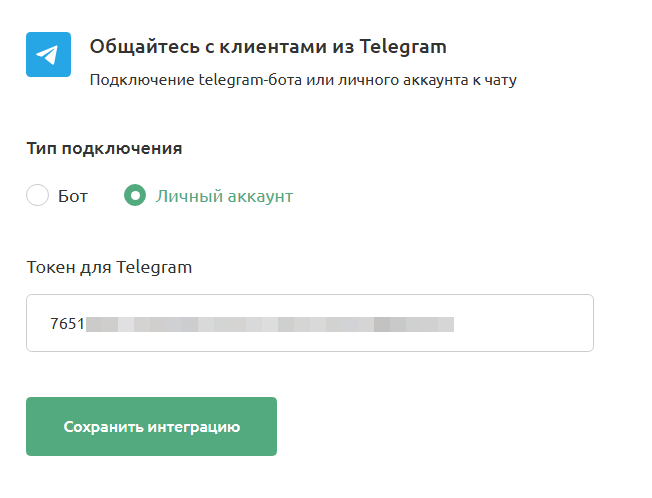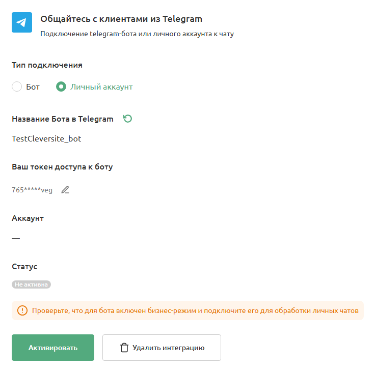 - 3Вставьте токен в ЛК Cleversite и нажмите «Сохранить интеграцию»