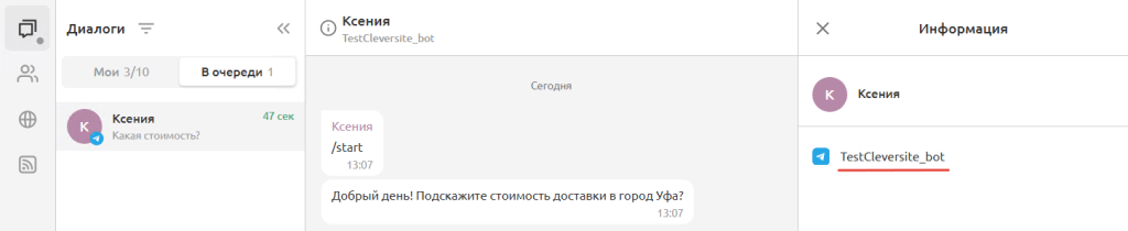 - 1После создания бота у пользователей телеграм появится возможность писать в него напрямую, такие чаты тоже поступят в Cleversite. Вы всегда их сможете отличить по источнику в пульте.