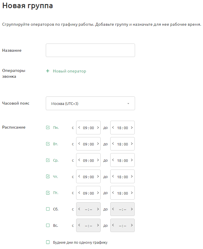 - Назначить график работы для создаваемой группы менеджеров. Он может быть: