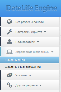Шаблоны в CMS DataLife Engine можно найти и изменить при помощи административной панели. Для этого необходимо: