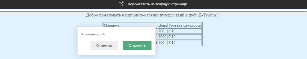 Как только пользователь перейдет по ссылке, он увидит выделенный элемент и комментарий на сайте.