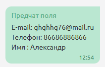 Данные из предчат формы отображаются во входящем сообщении в диалоге.