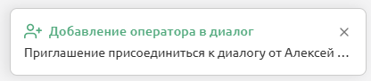 При отправке приглашения оператору придет уведомление о предложении присоединиться к диалогу. Если оператор в течение 30 секунд не примет диалог – приглашение будет отклонено.