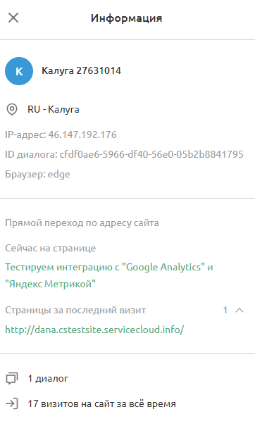 В веб-пульте или в десктопном приложении в диалоге, нажав на имя посетителя, можно увидеть :