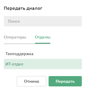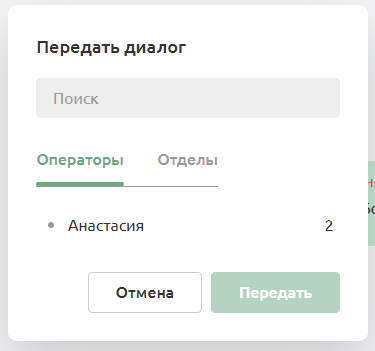 При передаче оператору отображается статус сотрудника и количество диалогов в работе.