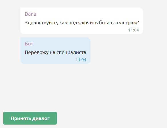 Если оператор присоединился к диалогу, то в чате отобразится эта информация.
