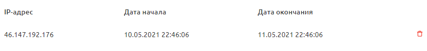 - 4 В появившейся форме отобразится полный список заблокированных на текущий момент посетителей Вашего сайта. Нажмите на кнопку "Корзина" напротив тех посетителей, которых Вы желаете разблокировать.