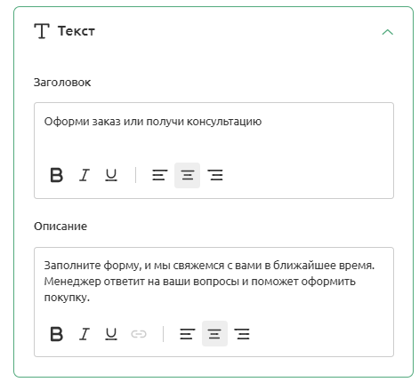 Заполните свой заголовок и описание поп-апа и оформите текст. Если текста много и поп-ап не влезает в экран, то его содержимое прокручивается.