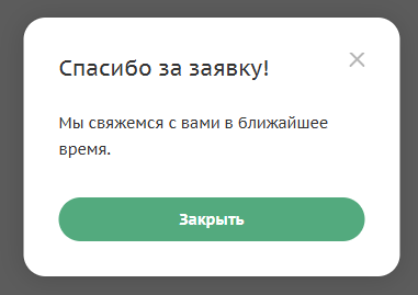 После того, как клиент заполнит данные и нажмет на кнопку поп-апа, отобразится еще одно окно поп-апа.