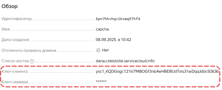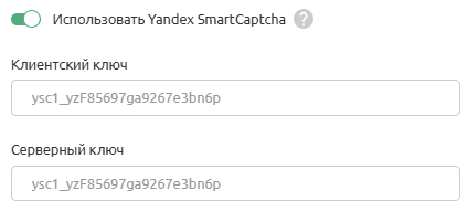 Для настройки капчи активируйте соответствующую кнопку, после чего появится возможность ввести клиентский и серверный ключи.