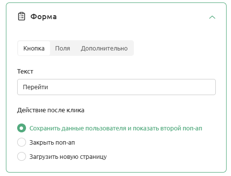 Задайте свой текст кнопки поп-апа и настройте, что будет происходить после нажатия этой кнопки.