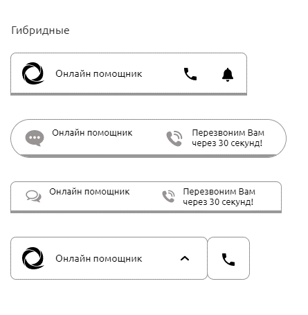 - 4 Раскройте пункт "Кнопка чата" - "Показать все" и установите тип кнопки "Гибридная (Звонок + Чат)".